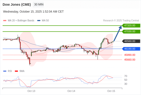 在 46190.00 之上,看涨,目标价位为 47030.00 ,然后为 47320.00 。