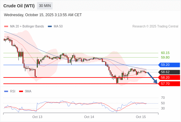 在 59.20 之下,看跌,目标价位为 58.20 ,然后为 57.70 。