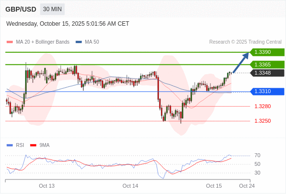 在 1.3300 之上,看涨,目标价位为 1.3365 ,然后为 1.3390 。