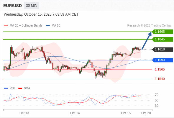 在 1.1590 之上,看涨,目标价位为 1.1645 ,然后为 1.1665 。