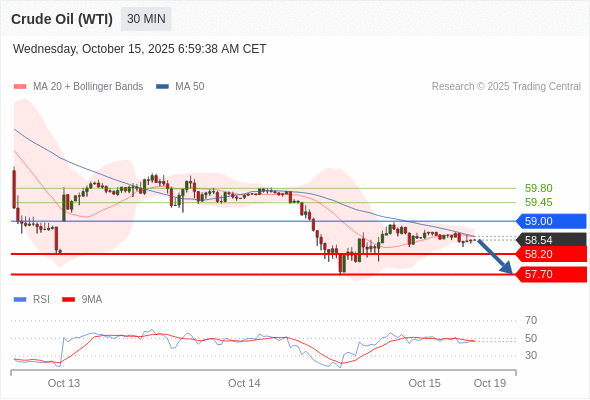 交易策略: 在 59.00 之下,看跌,目标价位为 58.20 ,然后为 57.70 。