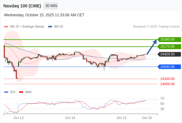 在 24540.00 之上,看涨,目标价位为 25170.00 ,然后为 25390.00 。