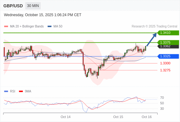 在 1.3325 之上,看涨,目标价位为 1.3375 ,然后为 1.3410 。