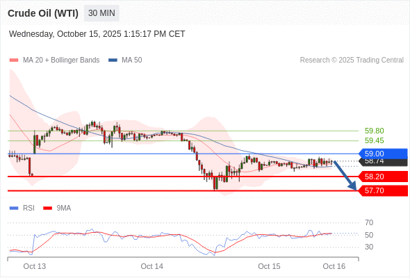 交易策略: 在 59.00 之下,看跌,目标价位为 58.20 ,然后为 57.70 。