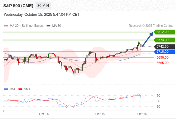 在 6718.00 之上,看涨,目标价位为 6774.00 ,然后为 6812.00 。