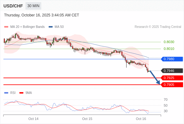 在 0.7980 之下,看跌,目标价位为 0.7925 ,然后为 0.7905 。