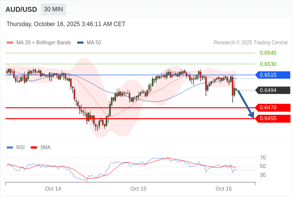 交易策略: 在 0.6515 之下,看跌,目标价位为 0.6470 ,然后为 0.6455 。