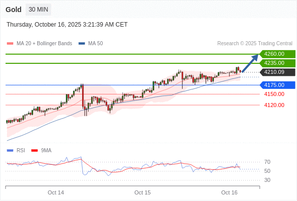 在 4175.00 之上,看涨,目标价位为 4235.00 ,然后为 4260.00 。