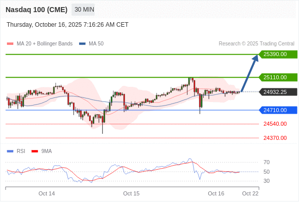 在 24710.00 之上,看涨,目标价位为 25110.00 ,然后为 25390.00 。
