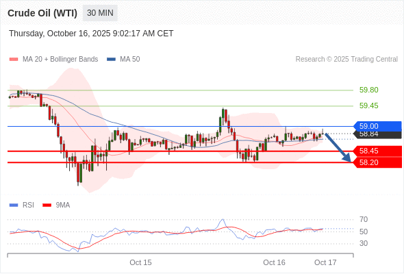 美国原油 (WTI) 期货 (X5) 当日内: 短期关键阻力位在59.00。