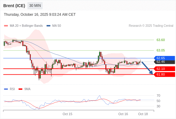 布伦特原油 (ICE) (Z5) 当日内: 短期关键阻力位在62.65。