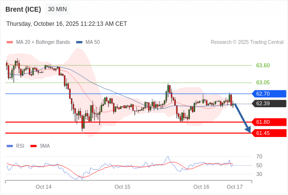 在 62.65 之下,看跌,目标价位为 61.80 ,然后为 61.45 。