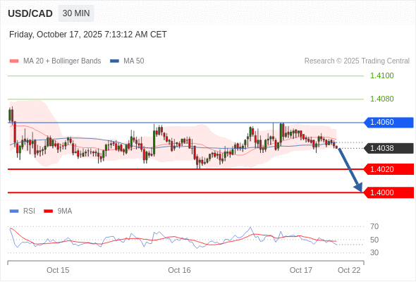 在 1.4060 之下,看跌,目标价位为 1.4020 ,然后为 1.4000 。