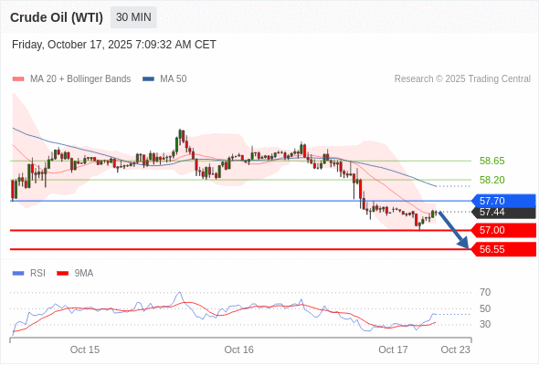 交易策略: 在 57.70 之下,看跌,目标价位为 57.00 ,然后为 56.55 。