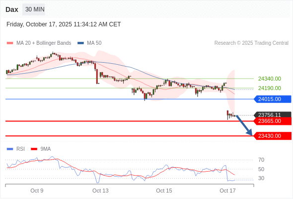 德国DAX指数 当日内: 存在压力。