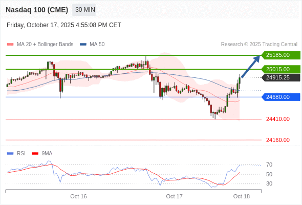 在 24680.00 之上,看涨,目标价位为 25015.00 ,然后为 25185.00 。