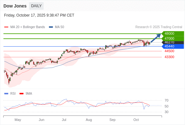 Dow Jones 短线: 超短线(当日内)支撑位在45440附近。