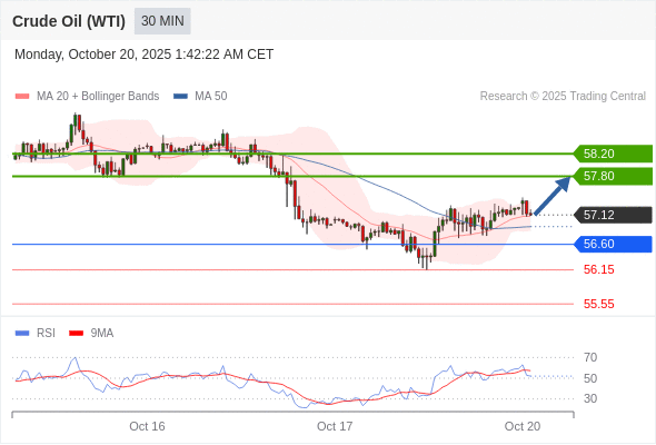 在 56.60 之上,看涨,目标价位为 57.80 ,然后为 58.20 。