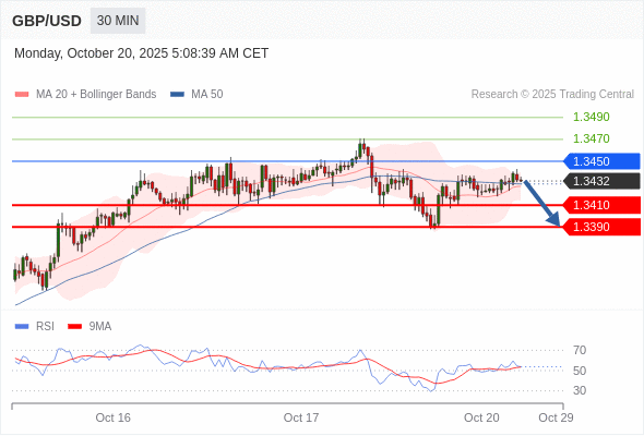 在 1.3450 之下,看跌,目标价位为 1.3410 ,然后为 1.3390 。