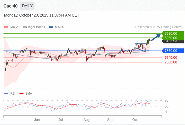 Cac 40 短线: 看涨。