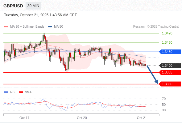 在 1.3430 之下,看跌,目标价位为 1.3385 ,然后为 1.3360 。
