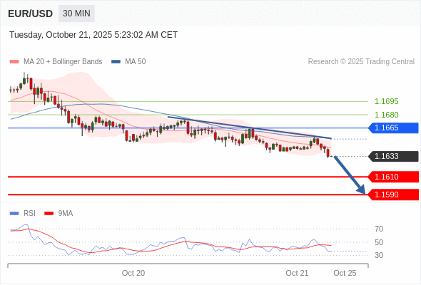 在 1.1665 之下,看跌,目标价位为 1.1610 ,然后为 1.1590 。