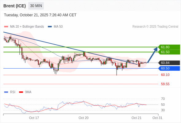 在 60.50 之上,看涨,目标价位为 61.50 ,然后为 61.80 。