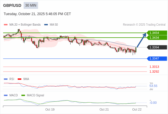 英镑/美元 当日内 : 看涨。
