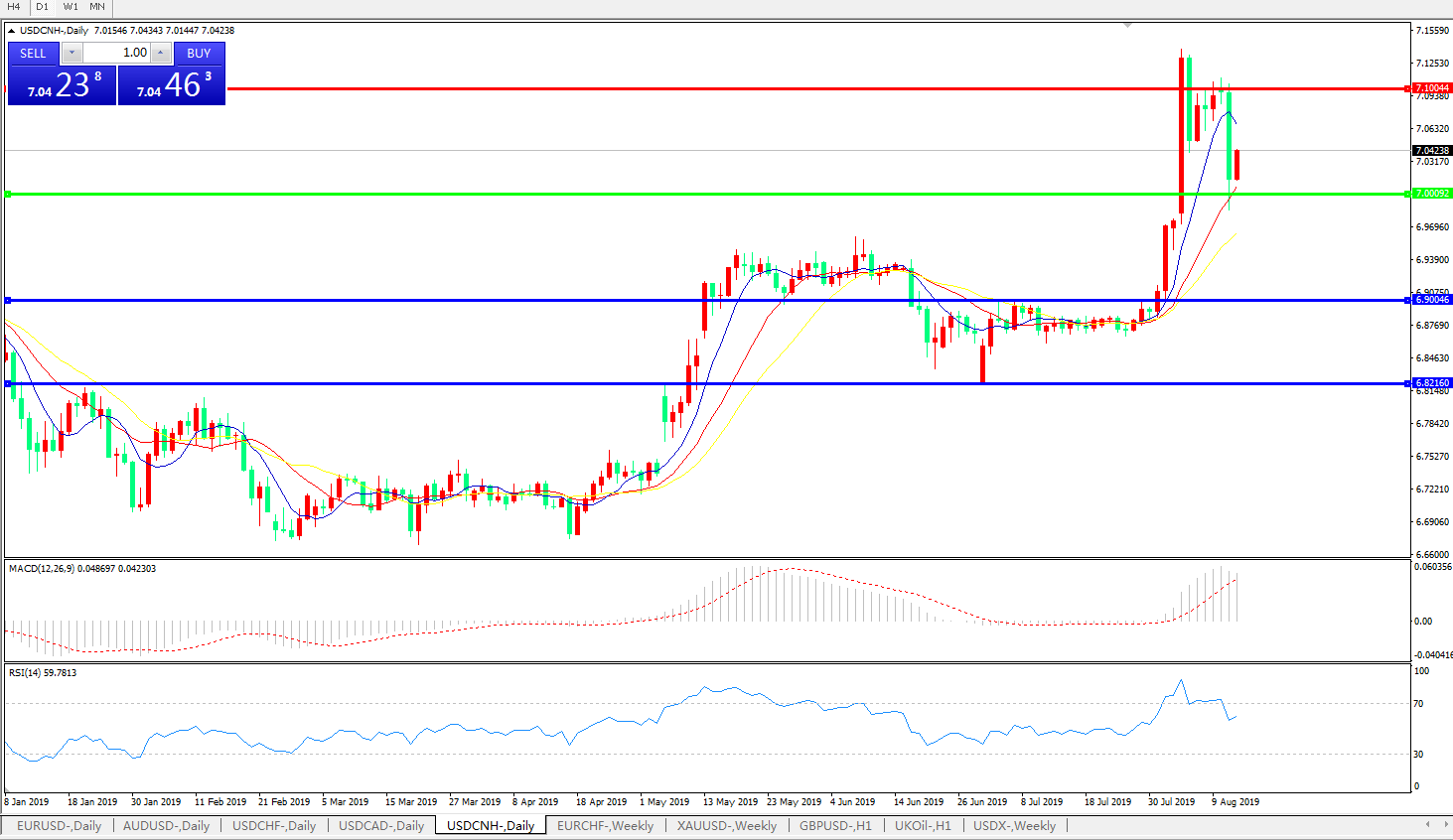 技术面简析:日图均线呈发散上行态势,汇价大幅下跌一度跌破7.0关口,MACD运行在0轴上方且动能维持放量,RSI呈缓步走低态势,预计汇价将维持高位整理,不排除进一步上行可能;但需警惕中美贸易谈判最新结果,任何细微进展都将打压汇价。