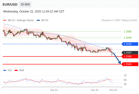 在 1.1625 之下,看跌,目标价位为 1.1585 ,然后为 1.1560 。