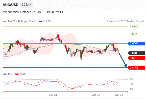 在 0.6505 之下,看跌,目标价位为 0.6475 ,然后为 0.6455 。