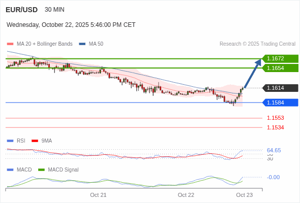 欧元/美元 当日内 : 看涨,当 1.1584 未被跌破。