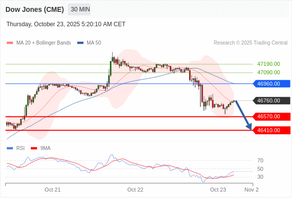 在 46960.00 之下,看跌,目标价位为 46570.00 ,然后为 46410.00 。