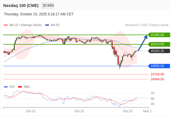 在 24855.00 之上,看涨,目标价位为 25210.00 ,然后为 25365.00 。