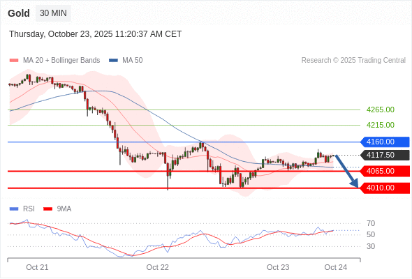 在 4160.00 之下,看跌,目标价位为 4065.00 ,然后为 4010.00 。