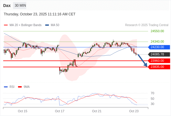 在 24230.00 之下,看跌,目标价位为 23960.00 ,然后为 23835.00 。