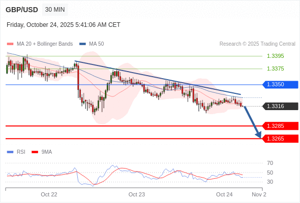 在 1.3350 之下,看跌,目标价位为 1.3285 ,然后为 1.3265 。