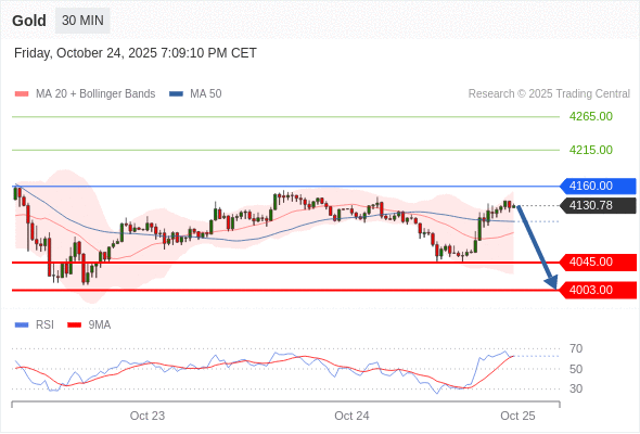 黄金现货 当日内: 短期关键阻力位在4160.00。