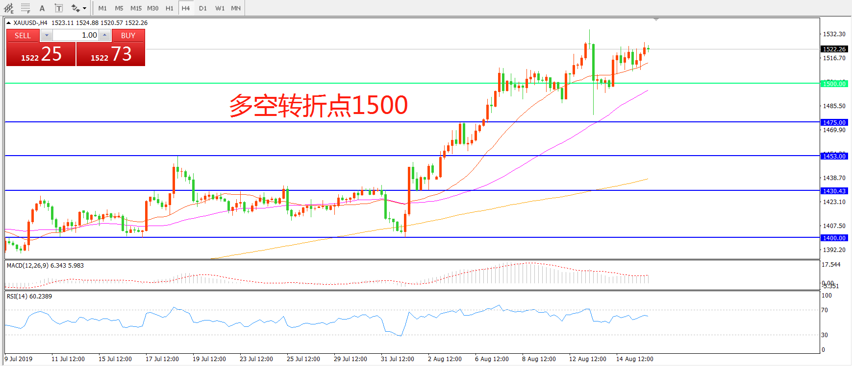 交易策略:在1500.00之上看涨,目标1530.00   1565.00