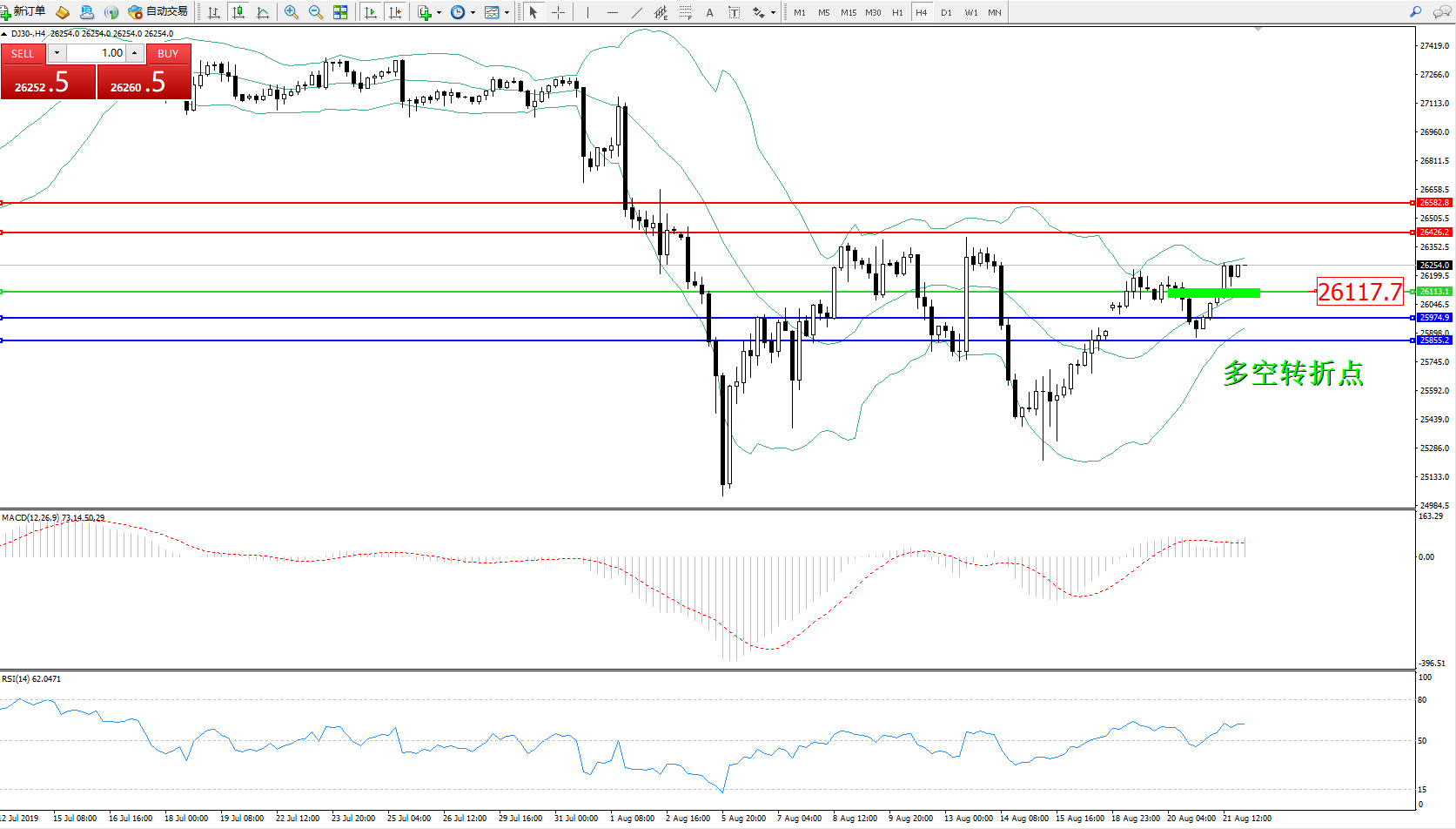 道琼斯指数821日(周三)收盘上涨240.30点,涨幅0.93%,报26202.73点。北京时间周四(822)凌晨02:00,美联储公布的7月会议纪要显示,美联储决策者一致认为,在决定未来是否降息方面,“保持可选性很重要”;投资者关注美联储7月会议记录,以寻找未来降息的线索;美联储周三公布的会议记录显示,在上次会议上就更大幅降息进行了辩论,不过政策制定者一致希望避免给外界留下处在进一步降息路径上的印象;美国总统特朗普周三表示,美国在与中国和其他贸易协定方面做得很好,同时他向美联储施压,要求其降低利率,称其政策正在阻碍美国经济增长,降低美国的经济竞争力;美国股市普遍上涨,此前公布了乐观的零售企业财报;美国公债收益率上升,因股市上涨反映出风险人气改善。