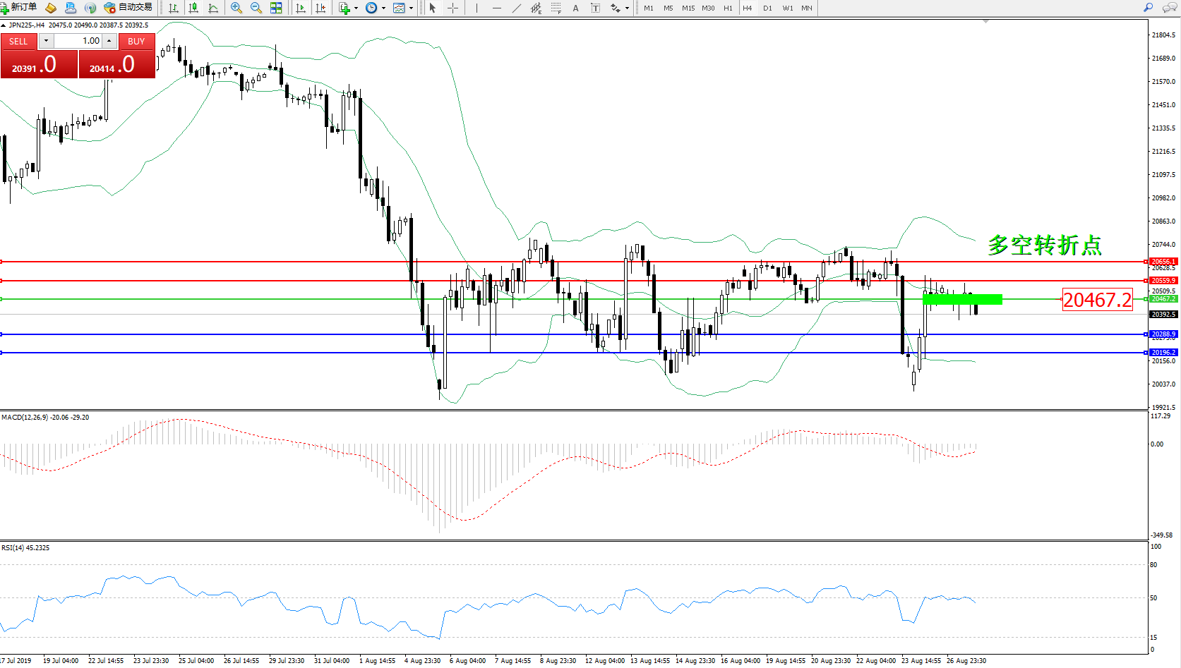 日经225指数8月27日(周二)收盘上涨182.46点,涨幅0.90%,报20443.50点。国际贸易关系出现一些和解迹象,安抚了投资者的紧张情绪;美国国债收益率下跌,部分投资者仍青睐较为安全的国债;两年期公债收益率报1.5326%,美国指标10年期公债收益率在亚洲市场跌至1.5249%,市场普遍认为收益率曲线倒挂是经济即将衰退的信号;围绕贸易协议的乐观情绪推动美元隔夜上涨,但感觉市场有些操之过急,部分交易员可以在该水平进行一些获利了结。