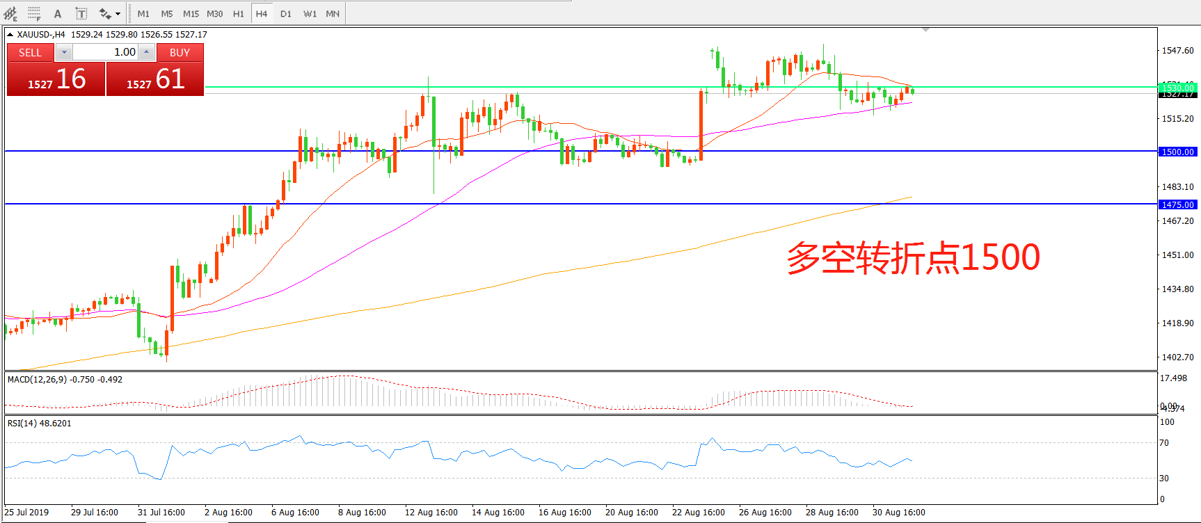 备选策略:在1530.00之下看跌,目标1500.00 1475.00