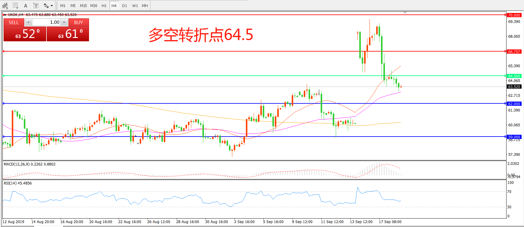 交易策略:在64.50之下看跌,目标62.00   59.00