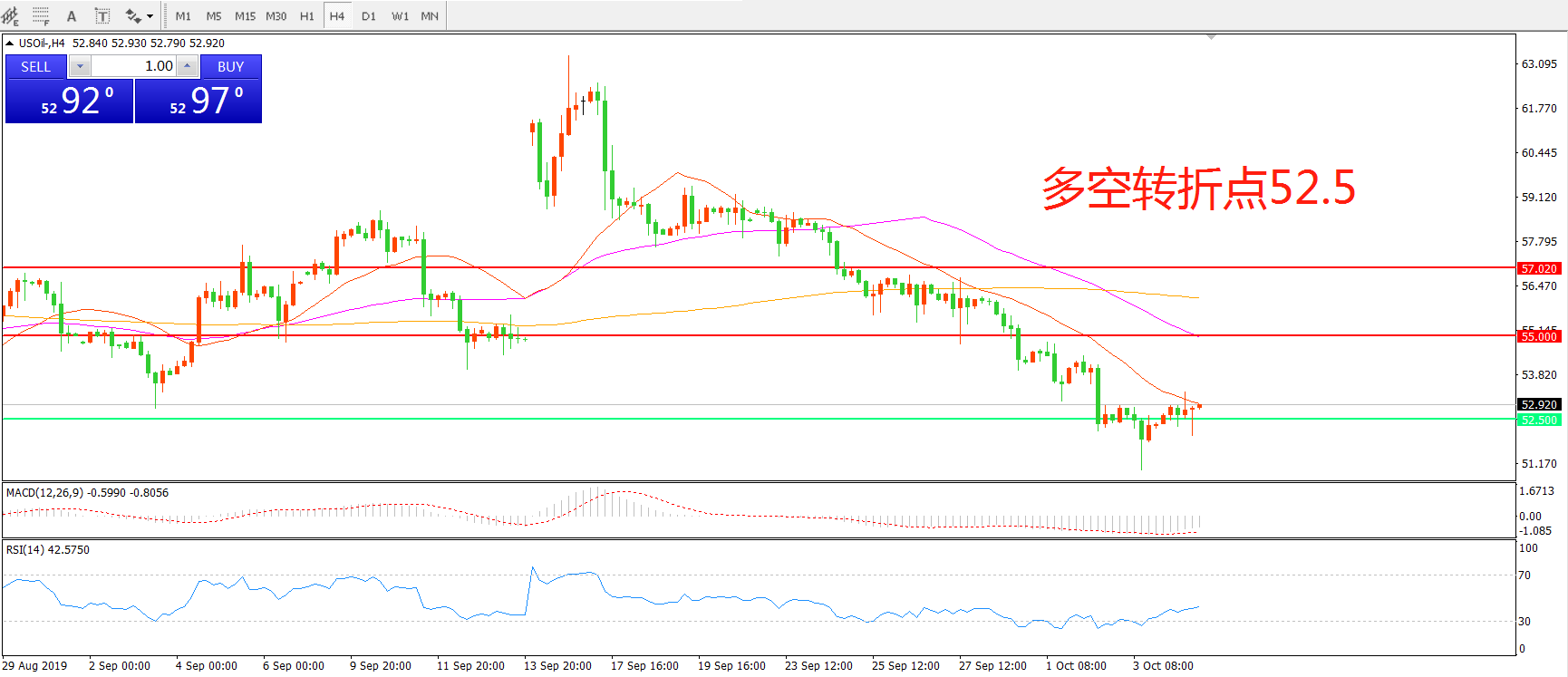 交易策略: 在52.50之下看跌,目标50.00 48.00