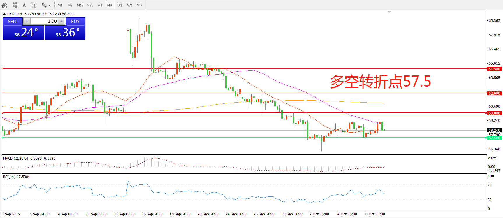 周三(10月9日),北京时间22:30,美国EIA公布的数据显示,美国当周EIA原油库存增加292.70万桶,高于预期的增加171.7万桶,但精炼油库存和汽油库存同步出现减少,这与API库存表现是一致的。成品油库存的减少抵消了原油库存增加的利空,油价呈现窄幅震荡形态, 布伦特最终呈现窄幅震荡,收报58.24美元/桶,市场仍在等待中美谈判方面消息的进一步指引。