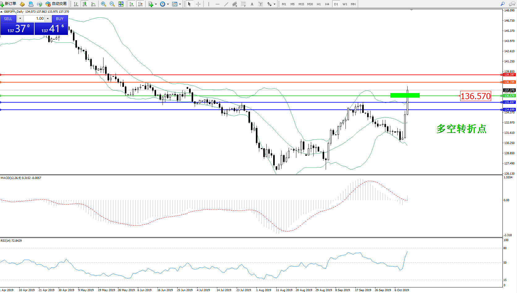 技术点评:多头强势拉升上扬,突破数月以来的高位,布林带指标上轨被突破后或有机会出现短暂震荡走势,但多头仍有上扬动力,MACD指标突破0轴线进入多头区域后维持徘徊,RSI指标处于多头区域不断拉升上扬中;