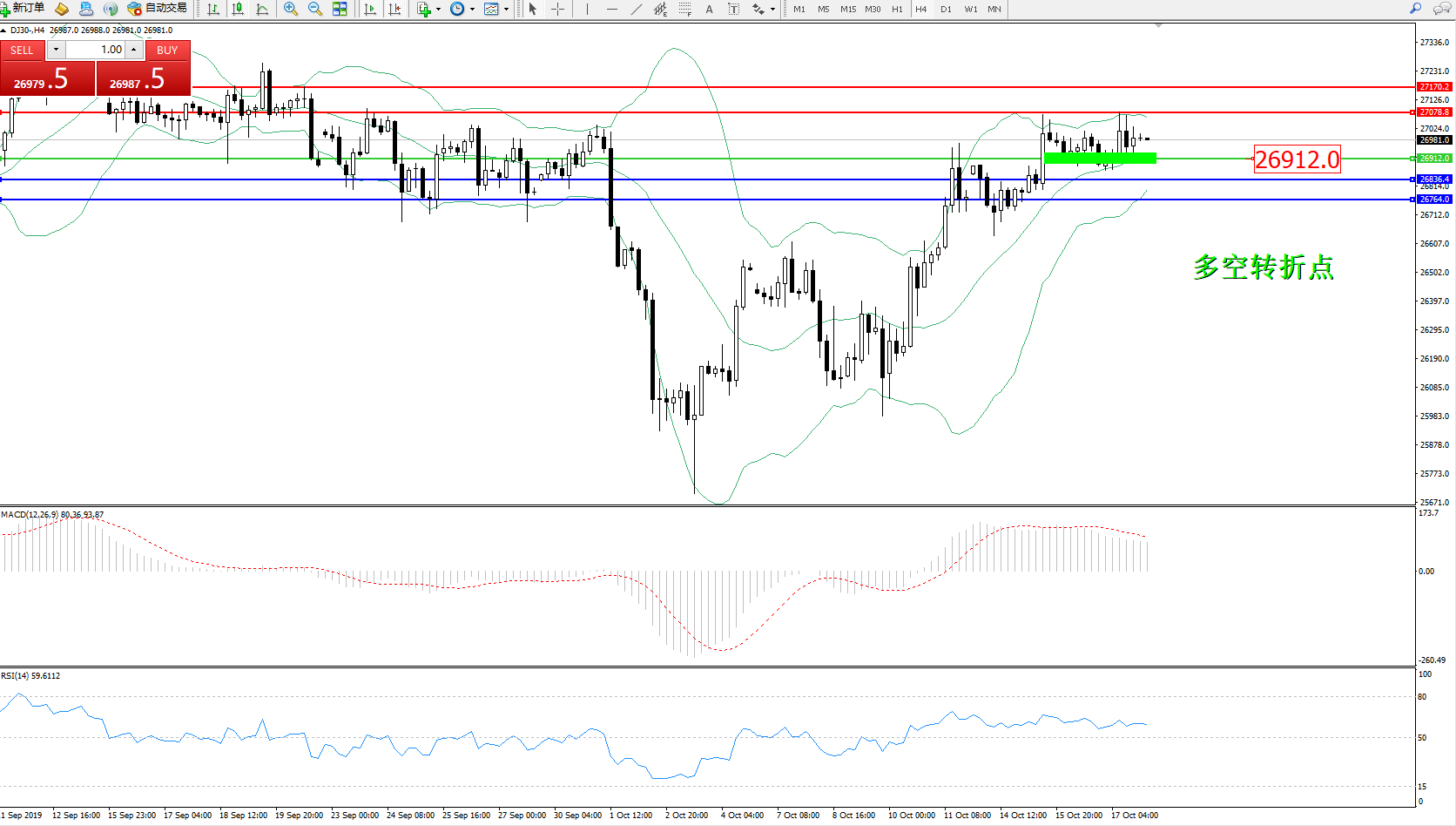 道琼斯指数10月17日(周四)收盘上涨23.90点,涨幅0.09%,报27025.88点。美国股市收高,逼近纪录高点,一连串的公司业绩大多表现不俗。摩根士丹利表示,毫无疑问风险有所降温,全球地缘政治和经济风险比两周前有所降低,但这可能只是虚幻的曙光。我们目前还不清楚,预测的水晶球仍然非常模糊。另一份报告显示美国制造业产值创五个月来最大跌幅。