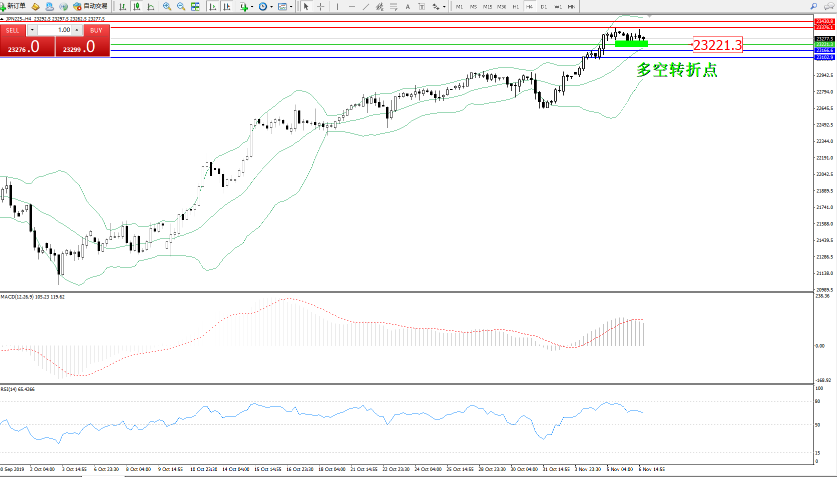 日经225指数11月6日(周三)收盘上涨39.51点,涨幅0.17%,报23291.50点。随着消费税上调的影响逐渐显现,日本经济有可能在第四季陷入萎缩。日本7-9月国内生产总值(GDP)环比年率料为增长0.8%,相当于较前季小幅增加0.2%。 此前第二季经济成长环比年率和较前季增幅修正后分别为1.3%和0.3%;民间消费为经济带来帮助,但经济增长可能有限,因为出口依然疲弱,而且企业控制旗下工厂的产出,调查显示,占GDP约六成的民间消费在第三季料增加0.6%,升幅与第二季持平。调查显示,第三季资本支出可能增加0.9%;第二季为增加0.2%;