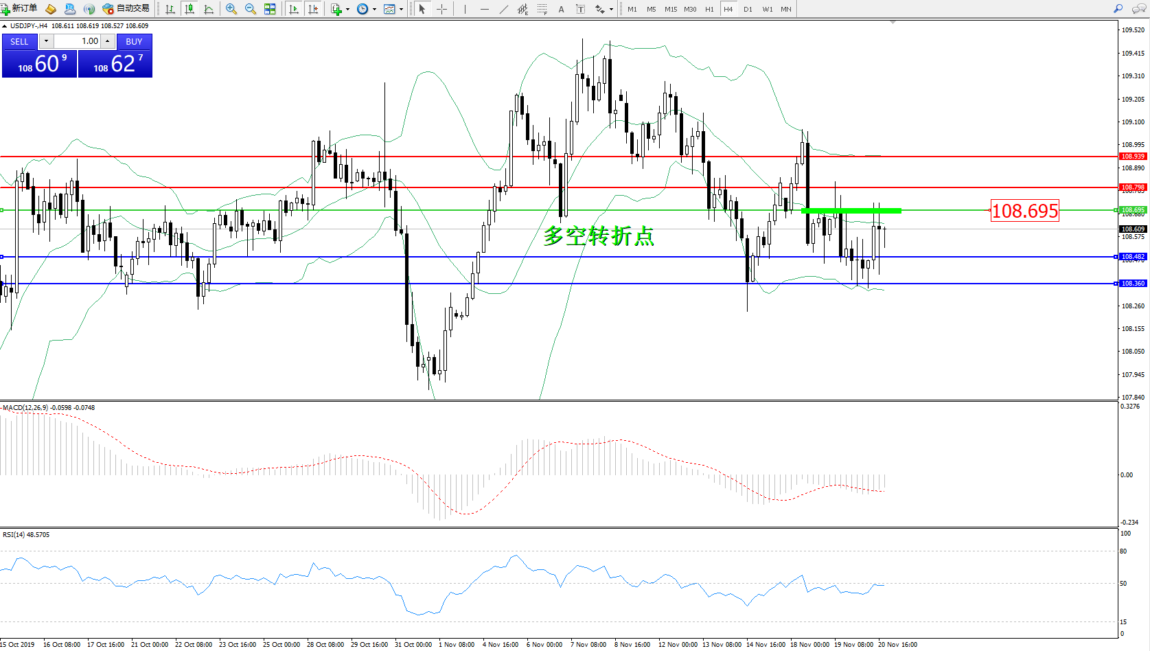 交易策略:108.695下方看跌,目标108.482108.360