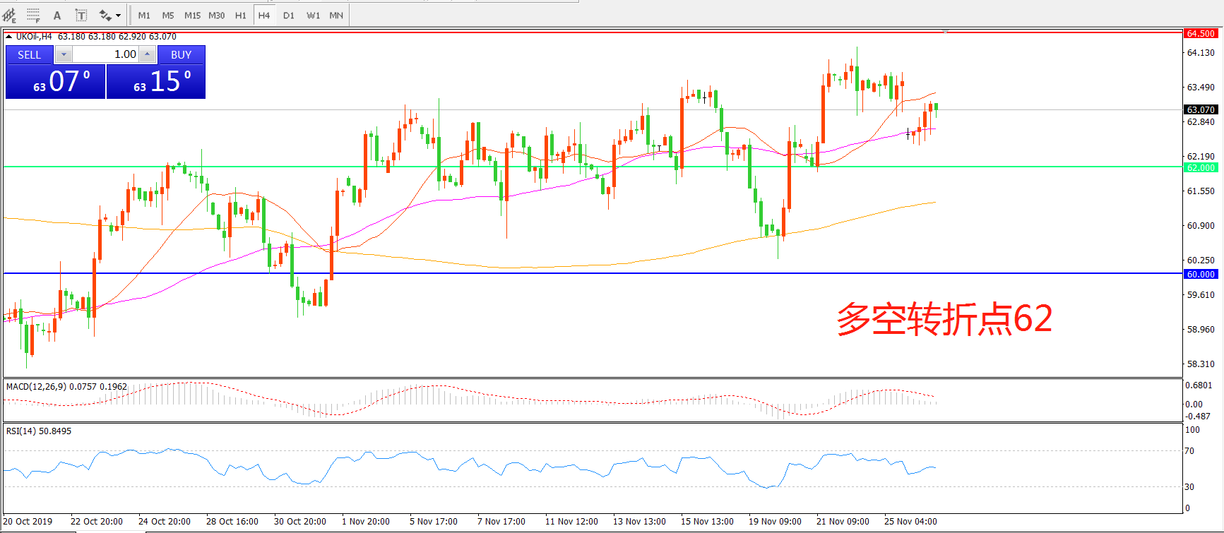 交易策略:在62.00之上看涨,目标64.50     66.00